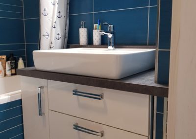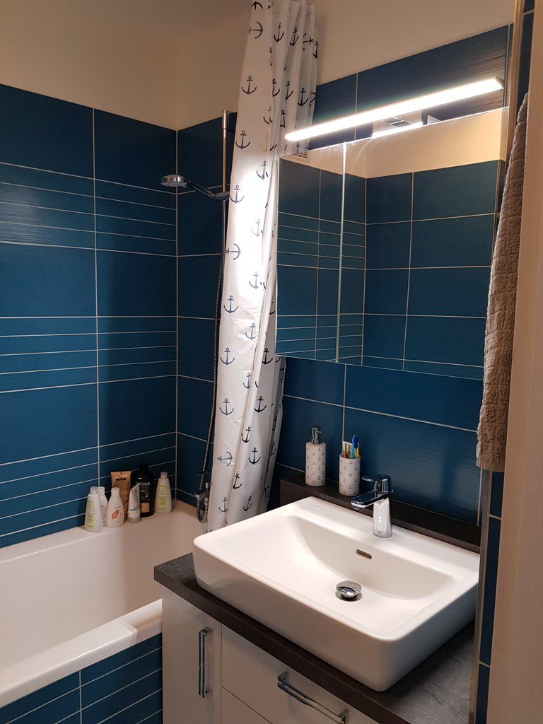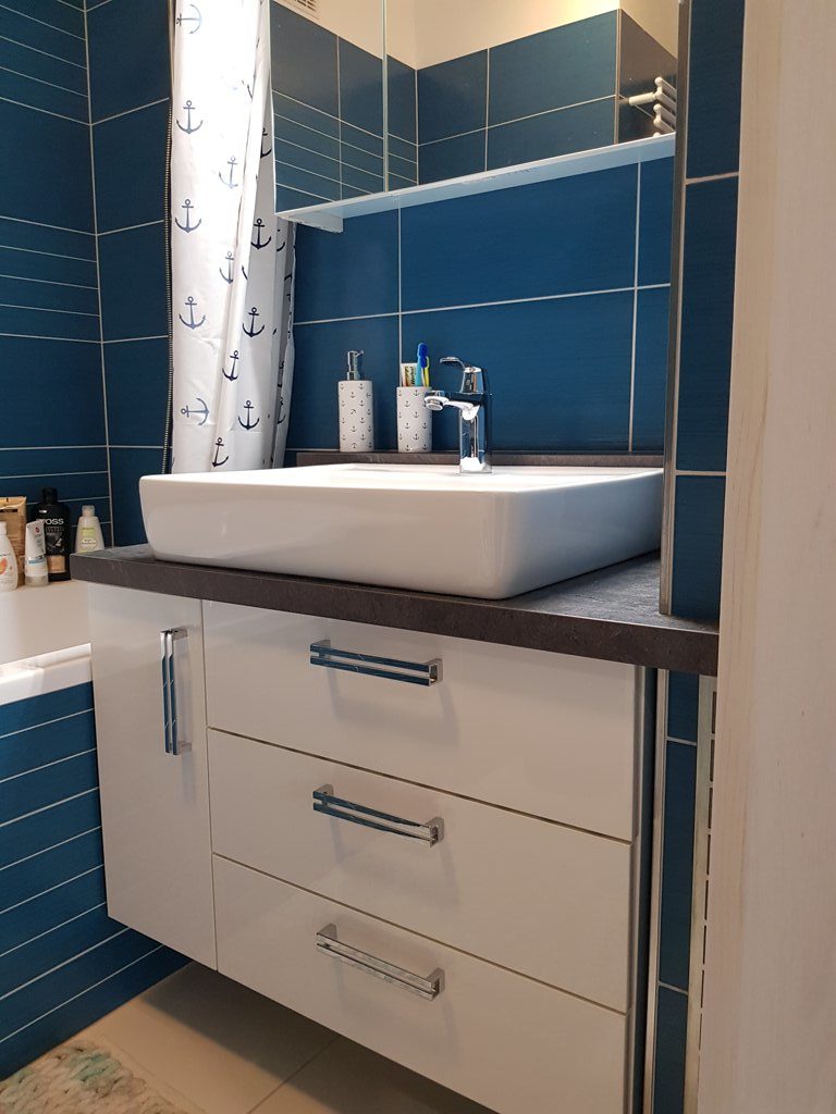 Koupelna v petrolejové barvě? Tato krásná kombinace se realizovala v Ostravě Porubě.